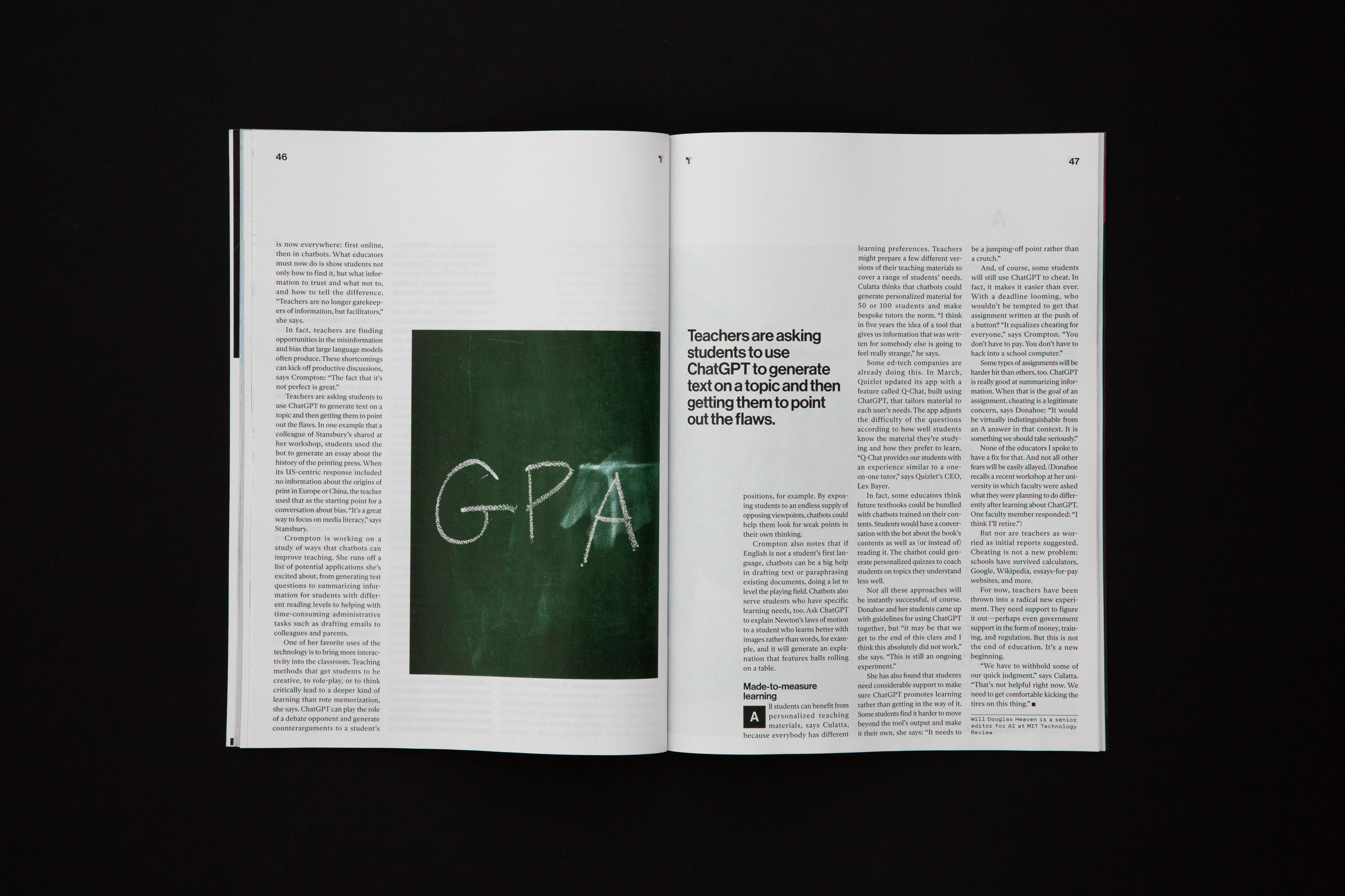 For the first issue to hit newsstands since the pandemic, Will Heaven writes about how AI is transforming the classroom—in a good way! The narrative around cheating students doesn’t tell the whole story. The issue explores opinions from teachers who think generative AI could actually make learning better.