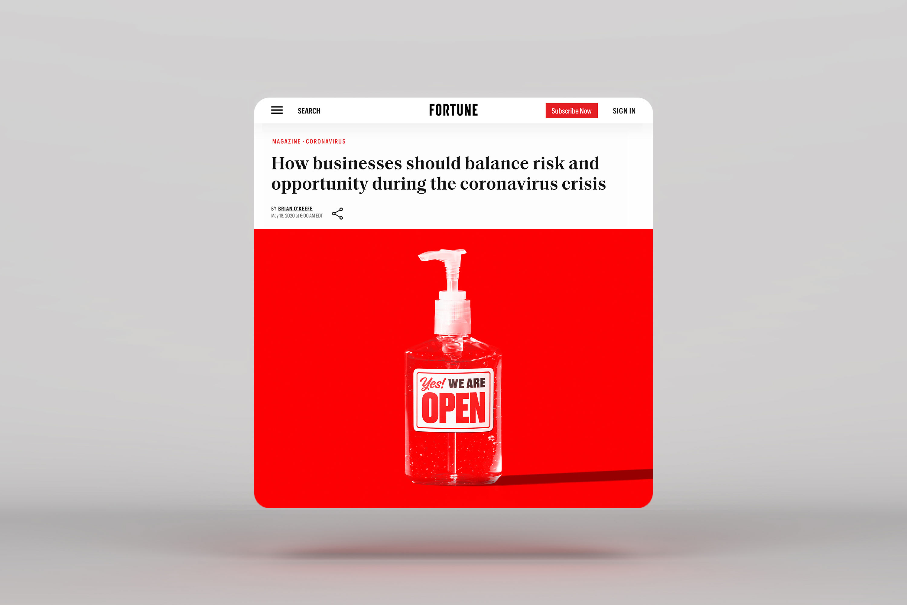How businesses should balance risk and opportunity, by Brian O'Keefe (2020). Art Director: Peter Herbert