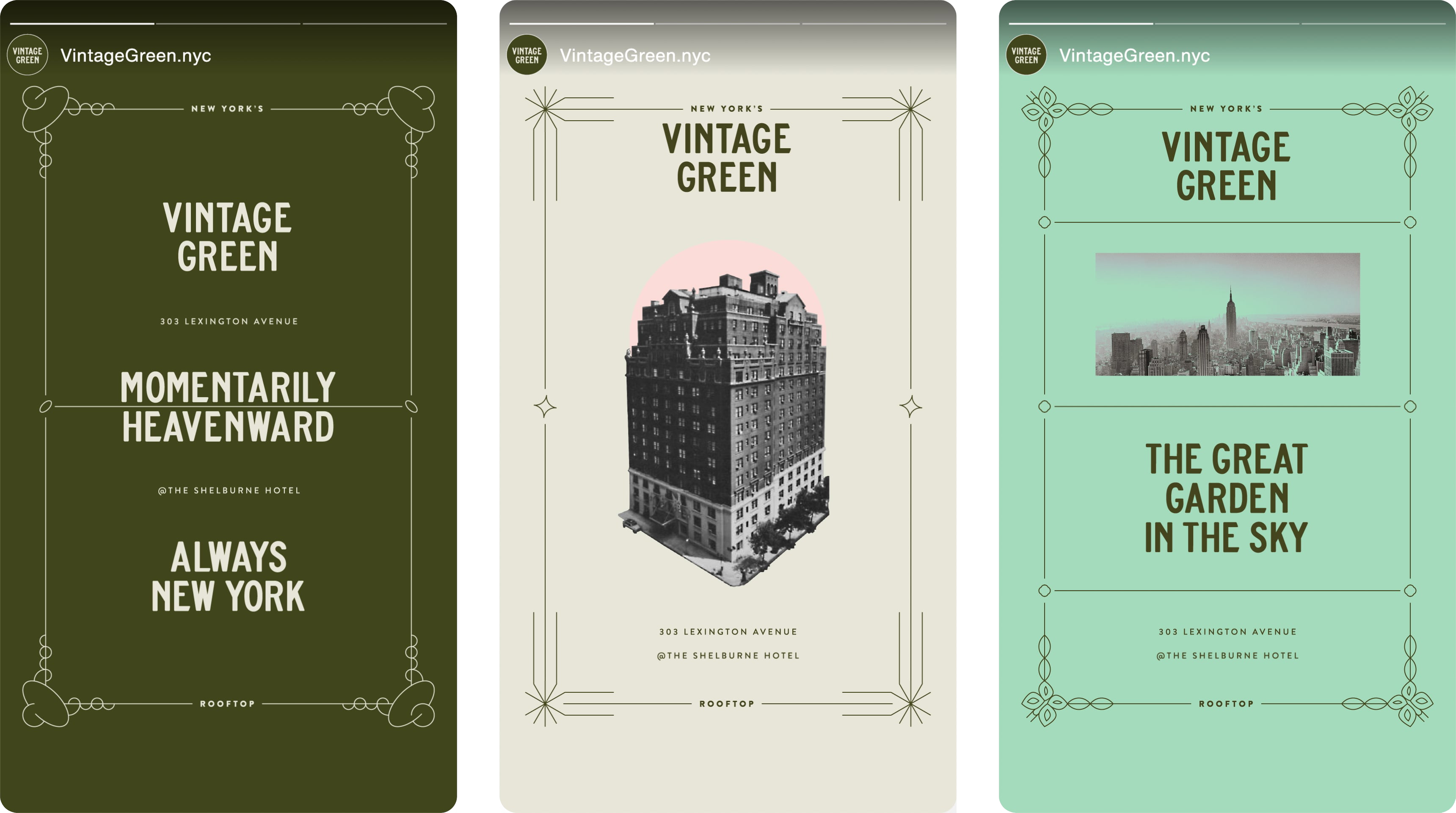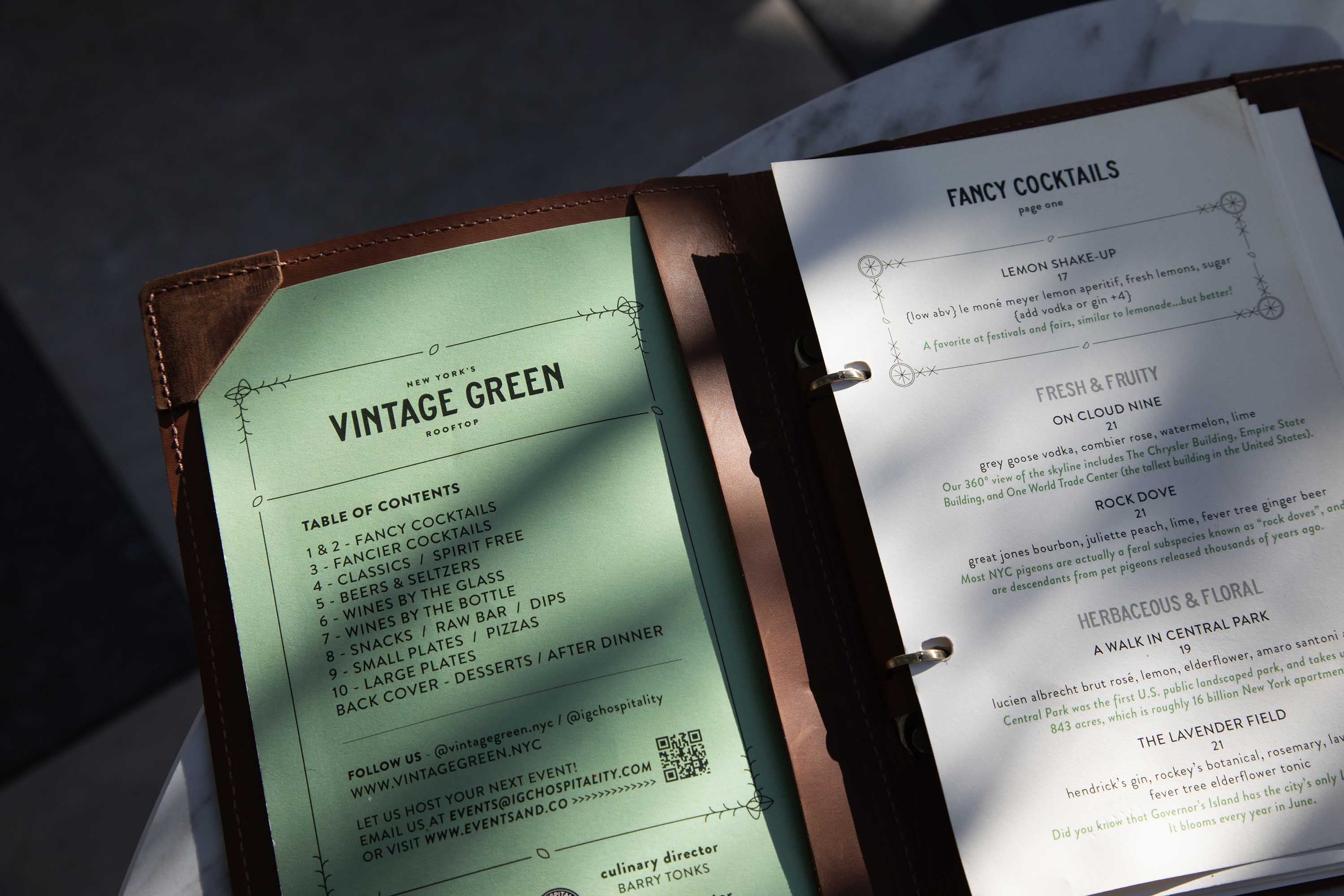 The name conveys a color exact only in its association with historic, human-made design—specifically New York’s imagining of the first U.S. publicly landscaped park. The venue and brand draw on this inspiration of green space as a utopian ideal and curiously superimpose it on the majestic 360-degree view of the city’s ambitious skyline.